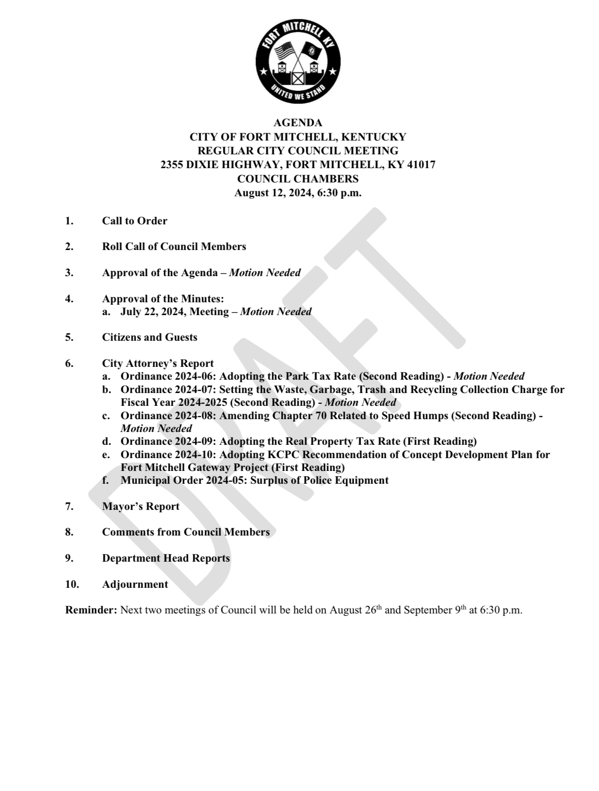 City of Fort Mitchell Council Meeting Agenda 8-12-24