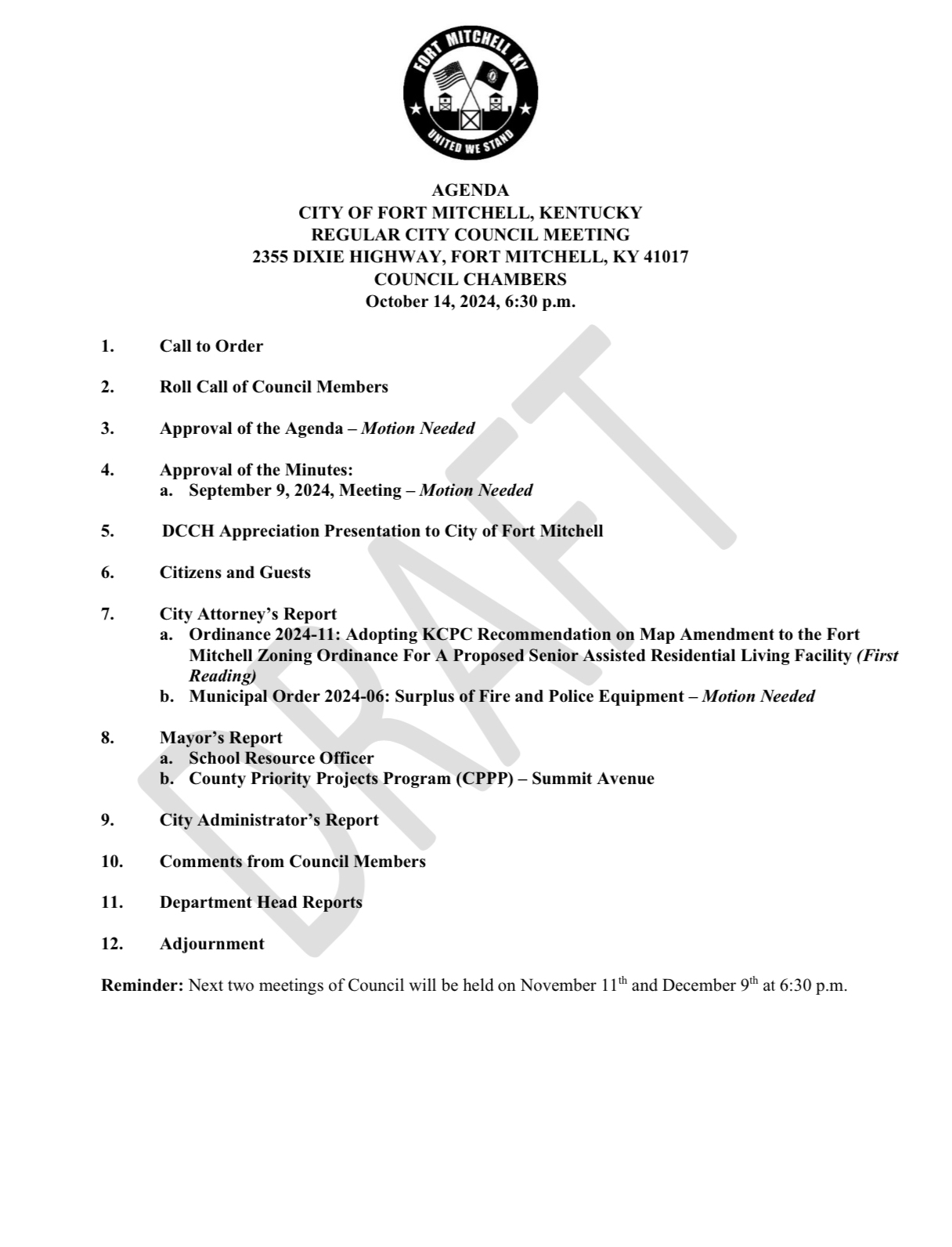 City of Fort Mitchell Council Meeting Agenda 10-14-24