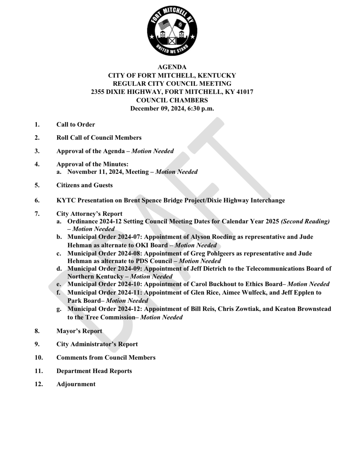 City of Fort Mitchell Council Meeting Agenda 12-9-24
