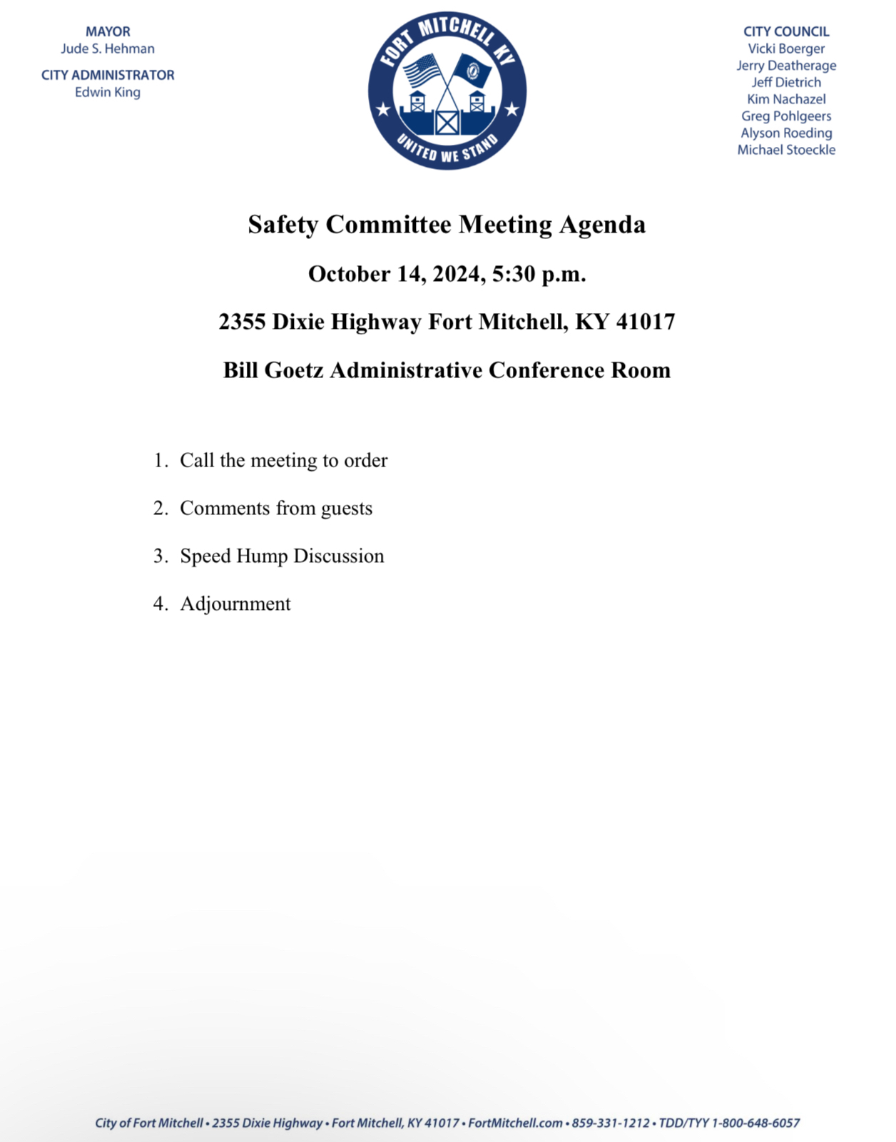 City of Fort Mitchell Safety Committee Meeting Agenda 10-14-24