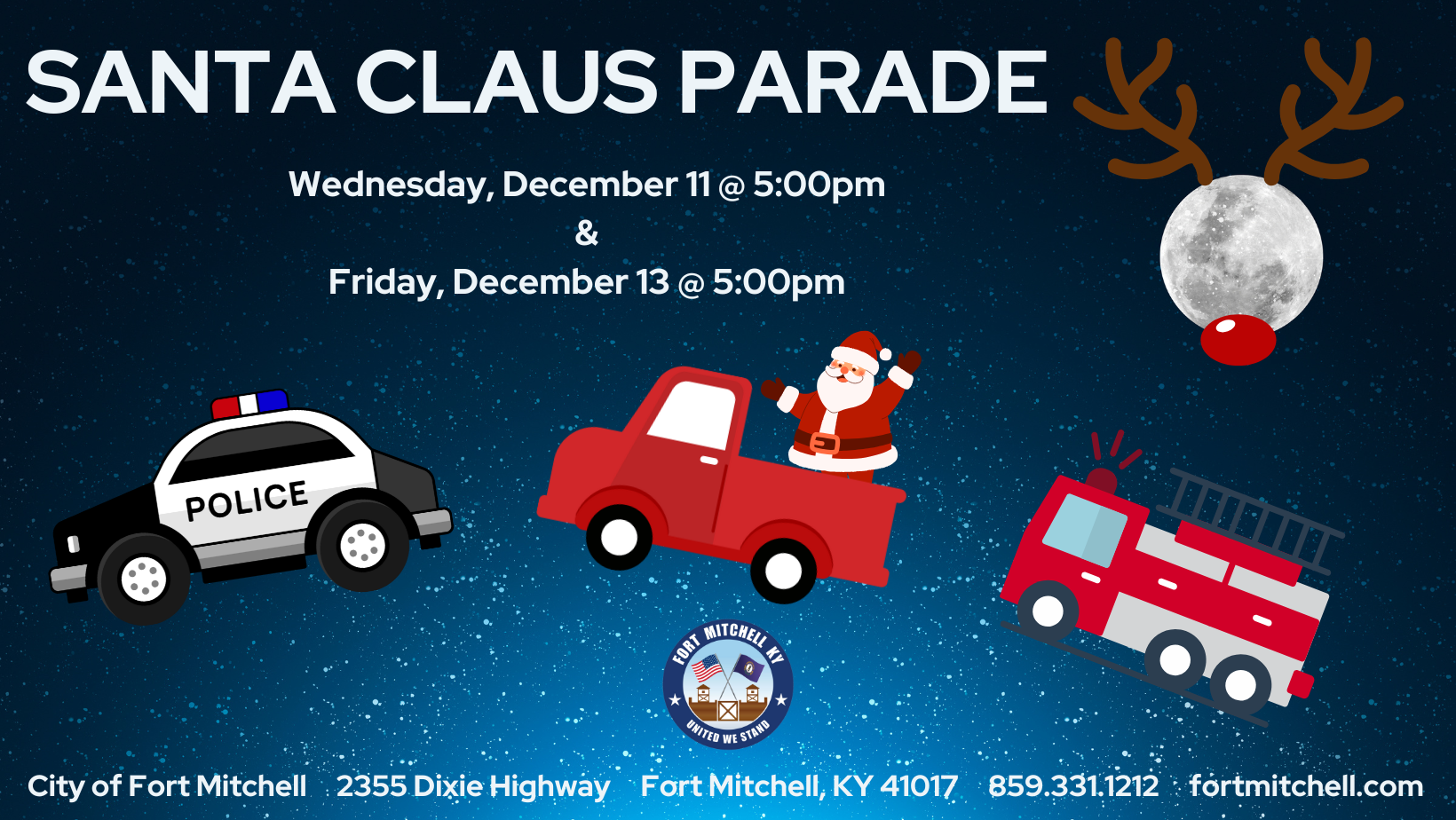 The man in the big red suit is coming to Fort Mitchell on Wednesday, December 11 and Friday, December 13 (both days beginning at 5:00pm).