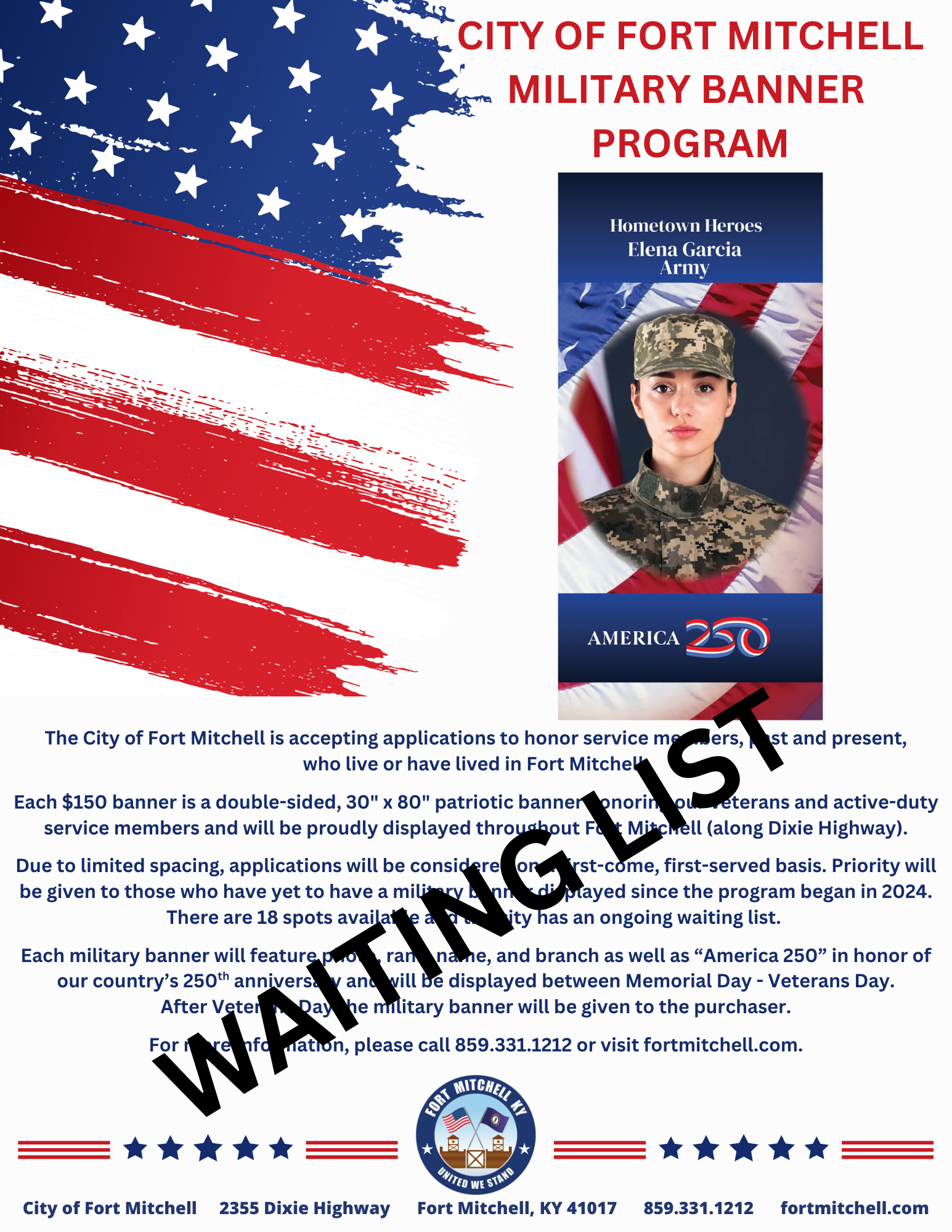 ***As of March 4, 2026, the maximum number of military banners (18) has been reached, and we have begun a waiting list for 2027. Thank you.***